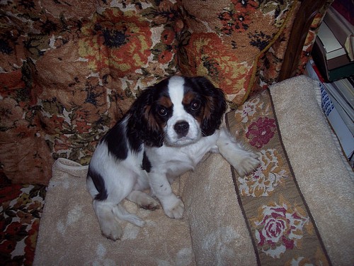 Lil' Rainbow is the image of her Great Grandmother "Rainbow's End". She is also "Princess Kismet's" Great Grand Daughter. Below she is pictured with her mother "Buttercup Bow". Lil' Rainbow is the result of four generations of selective healthy cavalier breeding.